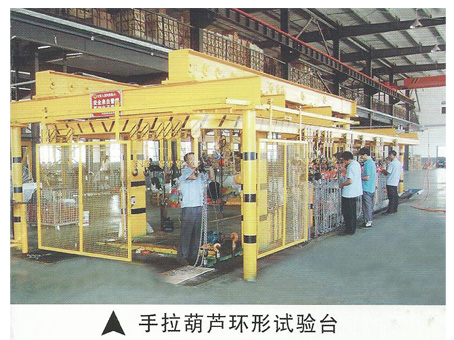為了廣大客戶們方便,我們公司有專業的人員在環形試驗臺上對手拉葫蘆進行測試,下圖便是手拉葫蘆環形試驗臺的實圖:
